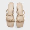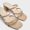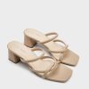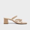 Dép cao gót chắc chắn cố định 4 phân màu trắng/be.